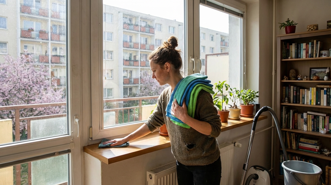 Spring apartment cleaning sounds reasonable right up to the moment when you empty one shelf, move a stack from the window sill, and suddenly the whole flat looks worse than before. That is why spring apartment cleaning works better as a sequence, not as a heroic one-day marathon. This guide gives you a realistic room by room cleaning plan for a Czech apartment, with clear order, sensible priorities, and a calm way to decide what to do yourself and what is worth outsourcing.